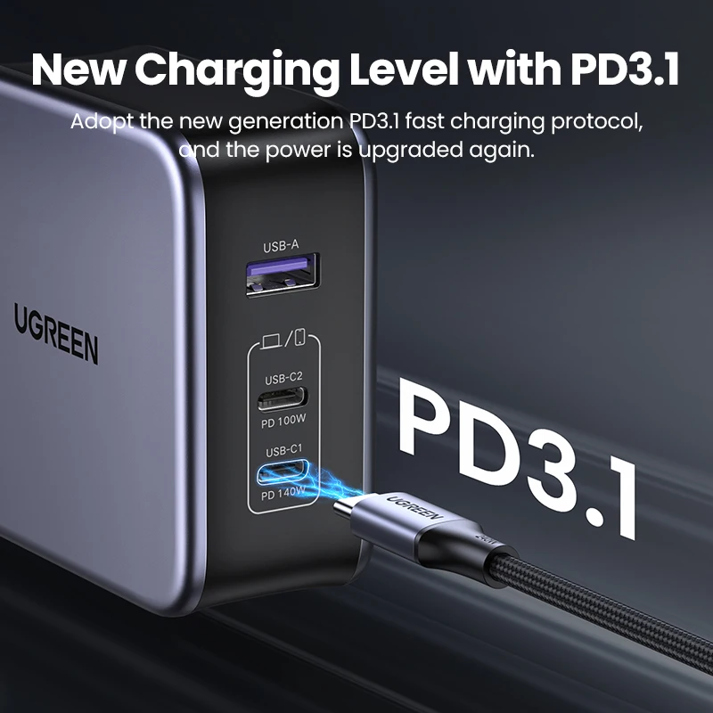 Inicio/Tienda/Cargador GaN 140W Ultra Compacto 4 Puertos PowerCore